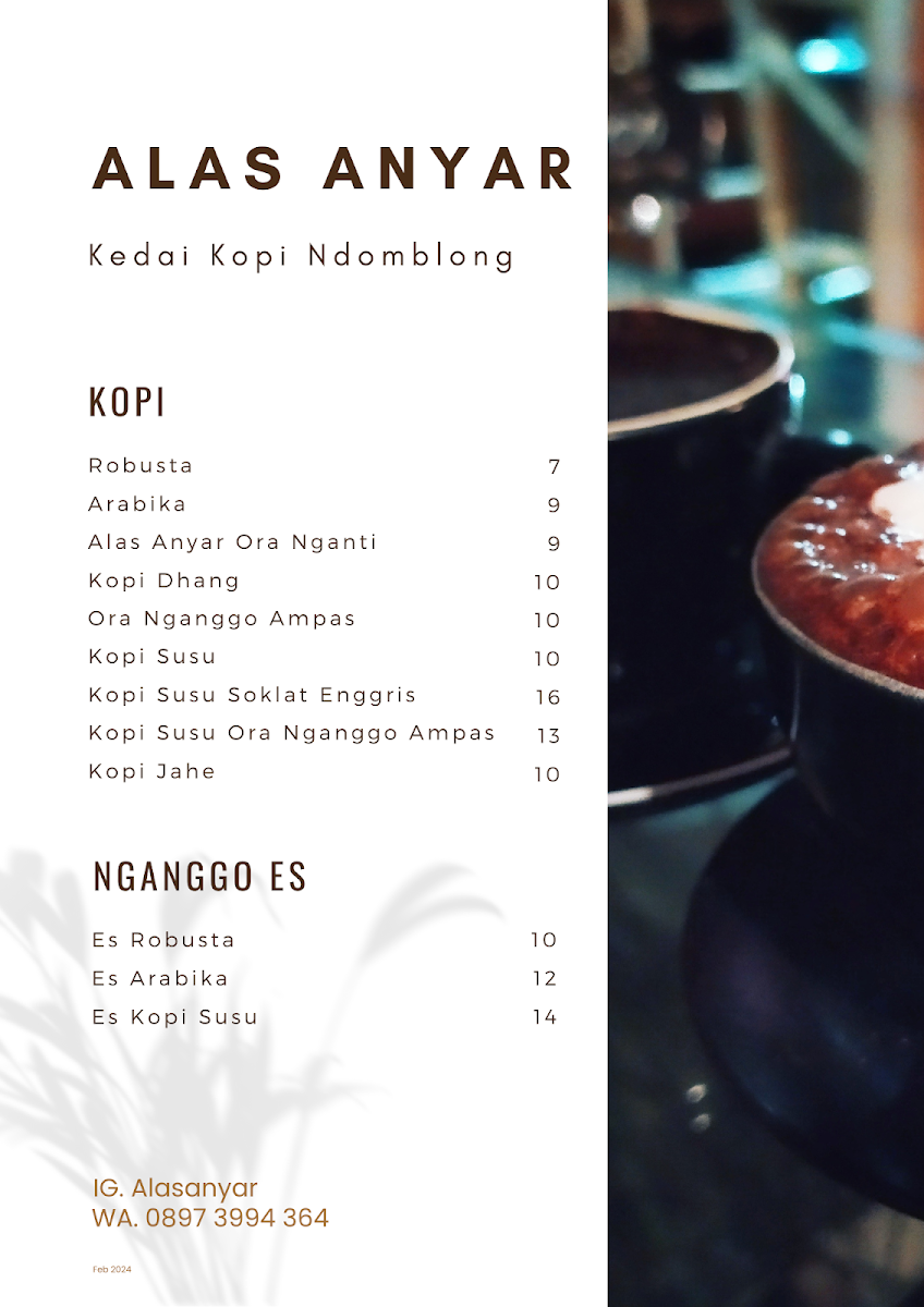Kedai Kopi Ndomblong Alas Anyar kartosuro Menu